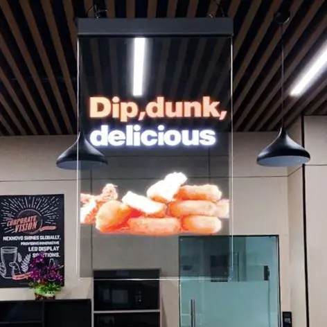 無縫融入環境:擁有超過 60% 的高穿透率,在播放廣告的同時不影響室內採光,能與任何商業環境優雅地融為一體。