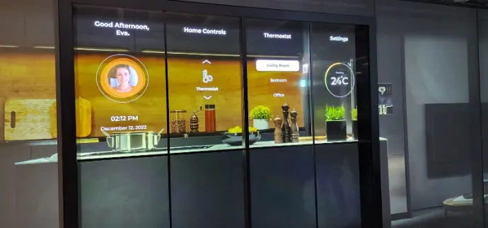 面板厚度僅約 1.6mm,可安裝於櫥窗、展示櫃、玻璃牆等位置,實現空間融合與高科技感的展示效果。